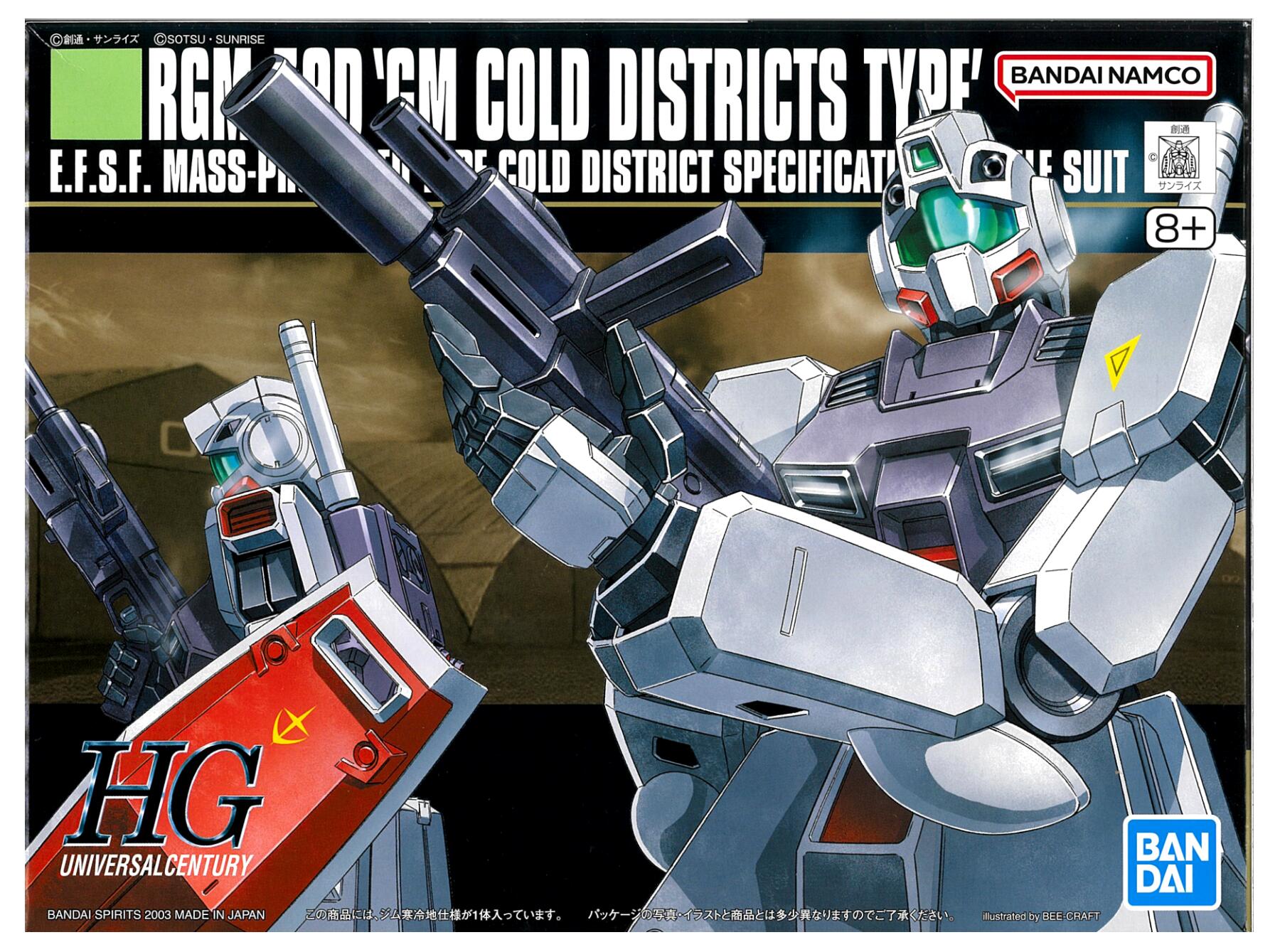 OVA「機動戦士ガンダム0080 ポケットの中の戦争」に登場するジムのバリエーション機『ジム寒冷地仕様』を1/144スケールHG仕様でモデル化しました。ヒジ関節は軟質素材を使用する事で、そのイメージを崩すことなく可動します。頭部カメラカバーはクリアーパーツで再現しました。武器は90mmマシンガン、ビームサーベル、シールドを装備しています。