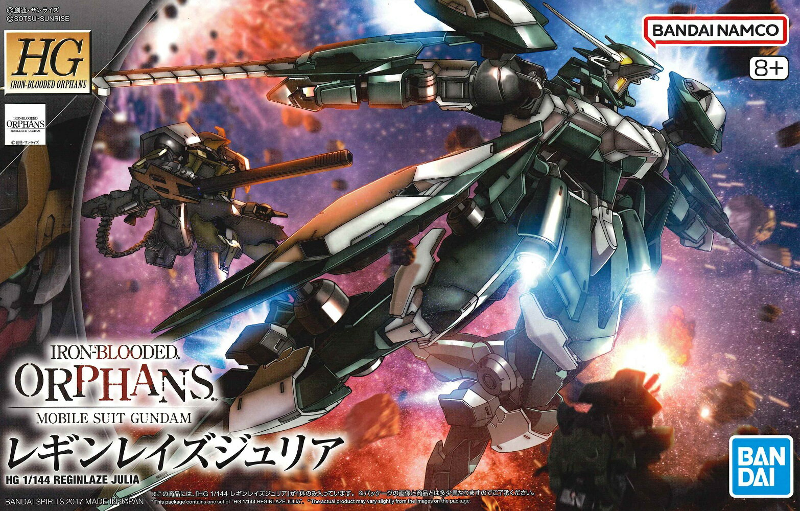ジュリエッタが搭乗するギャラルホルンの高機動型試験機をキット化!両腕のジュリアンソードは、ソードモード、ウィップモードを選択式で装備。軟質素材を採用し、ウィップモードの表情付けが可能。脚部にはブレードパーツを装備。機体各所のバーニアが高機動戦闘を演出。足首は組み替えにより設置状態も再現。専用台座が付属し、無重力空間での戦闘を演出。